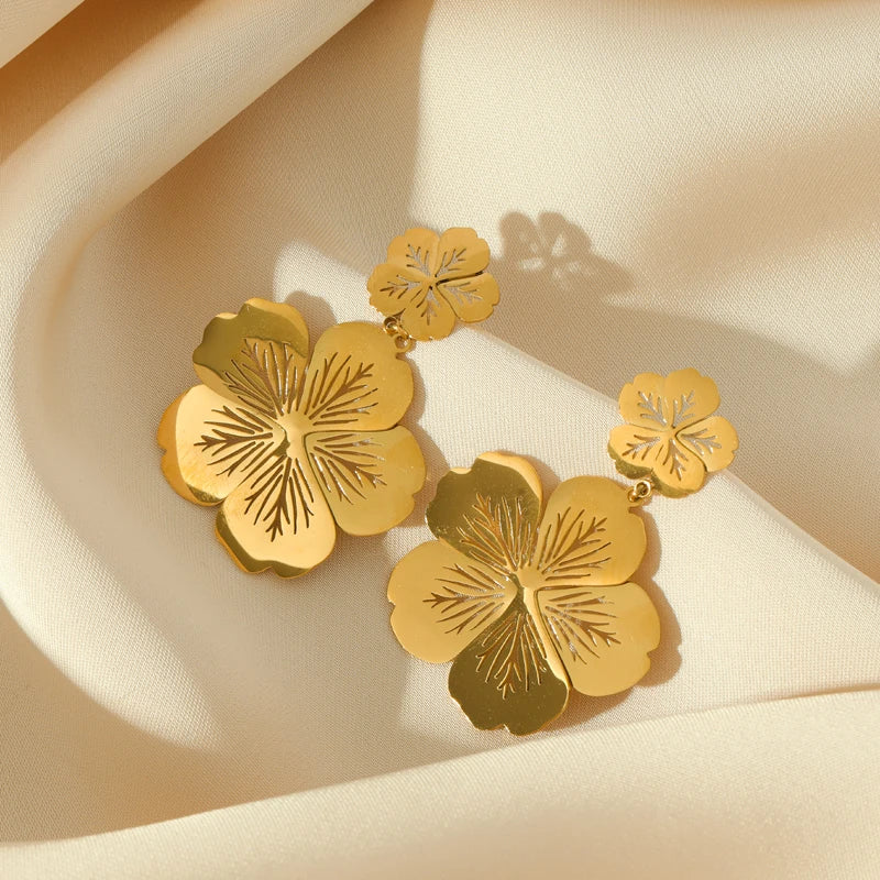Add a touch of elegance to your look with the 316L Stainless Steel Flower Drop Earrings. Made with high-quality materials, these earrings are both stylish and durable. Perfect for any occasion, they make for a great gift for yourself or a loved one. Upgrade your jewelry collection today.