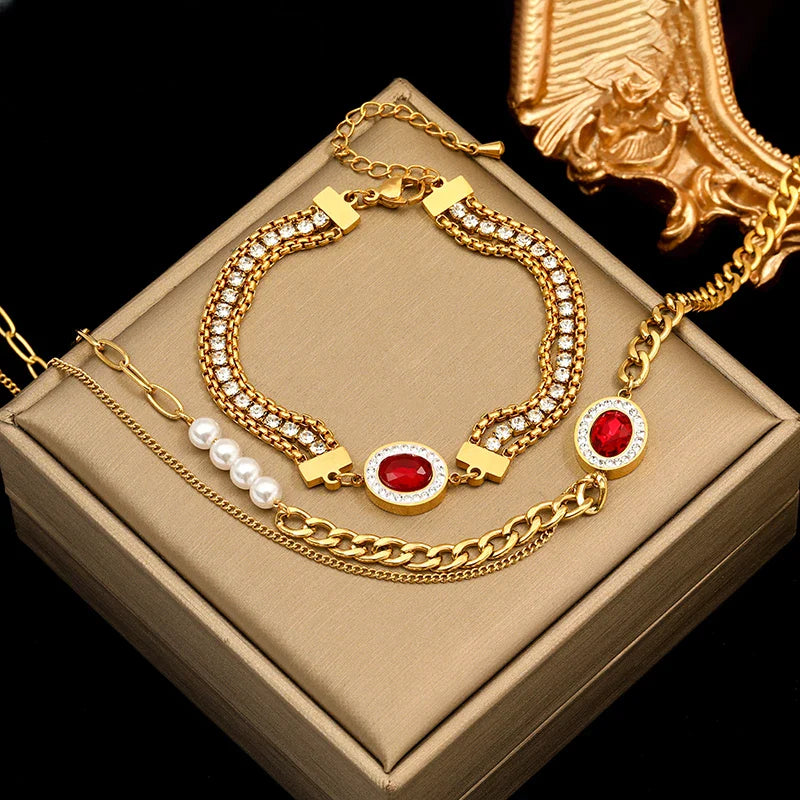 Expertly crafted from high-quality 316L stainless steel, the EILIS red zircon crystal bracelet set adds a touch of luxury to any outfit. This versatile set is perfect for any occasion, whether it's a wedding, anniversary, birthday, or a special banquet. A trendy and stylish gift for any woman or girl.